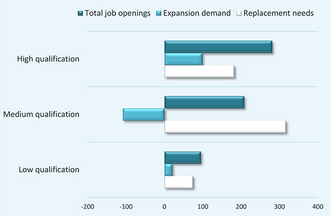 - Around 46% of the labour force will have high-level qualifications compared to 34.6% in 2013.