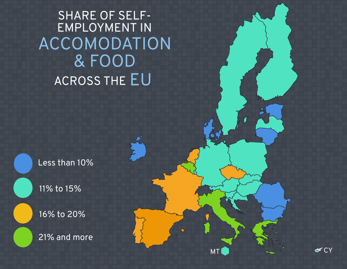 Figure 4: Self-employment in accommodation and food as a share of total employment in Member States, 2018