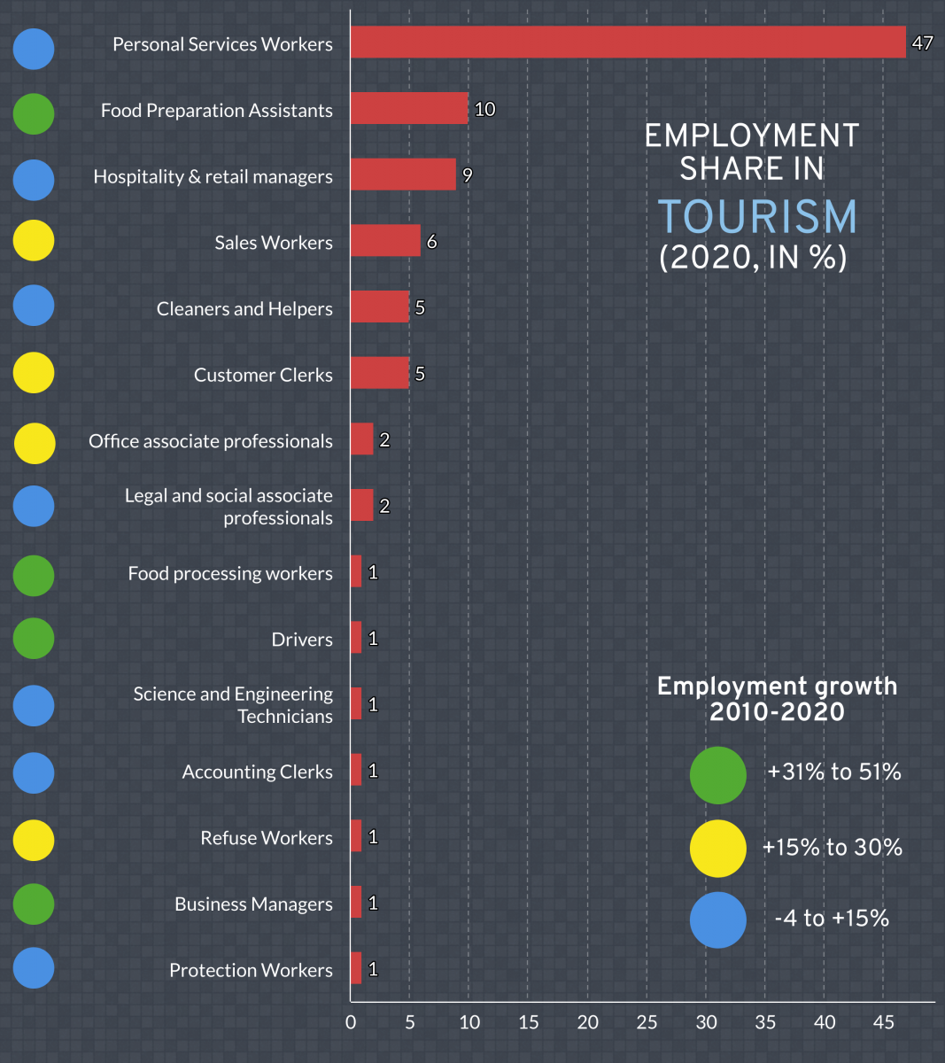 Figure 3: Employment share of occupations in tourism (2020) and their employment growth since 2010