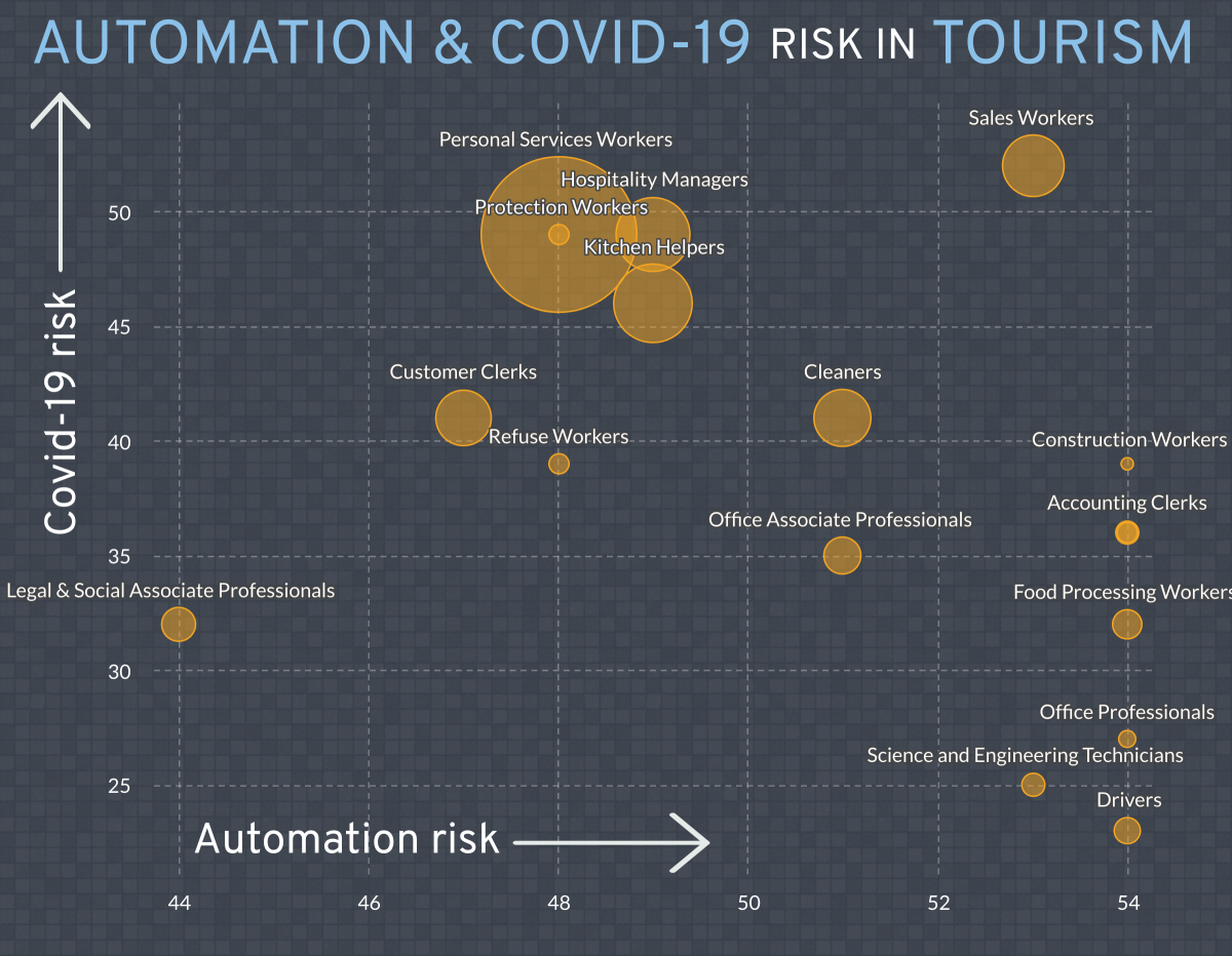 Automation risk. Social distancing measures have increased the demand for automated processes and web-based tools and customer service across sectors. In tourism, this trend led among others to an increase in web-based solutions to business meetings and events.