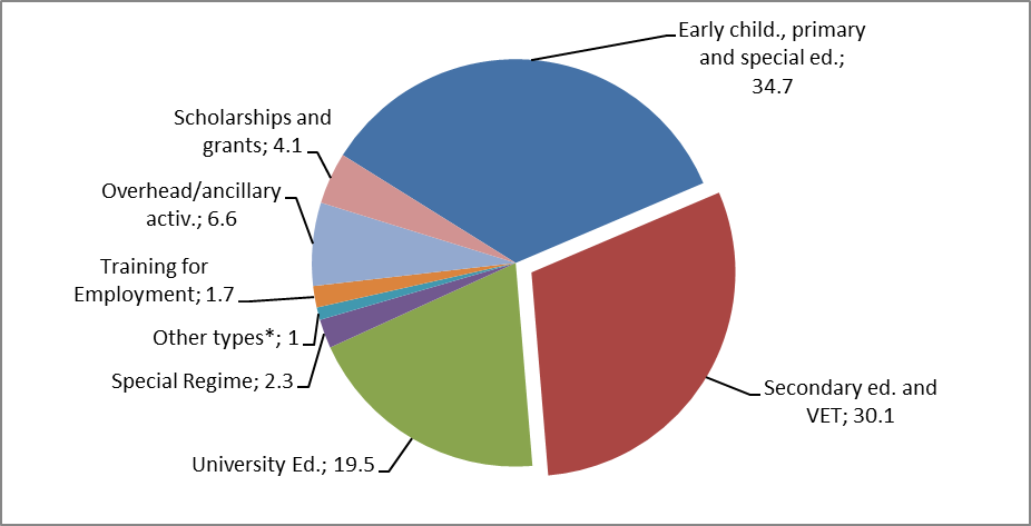 Initial vocational education and training (VET) is the responsibility of the education authorities. Continuing training is the responsibility of education and employment authorities, sharing the same consultation bodies but having their own respective governance and objectives.
