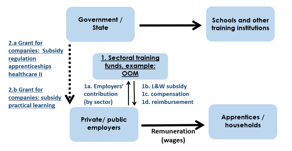Bricklayer: data is extracted from the collective labour agreement for the building sector (Collectieve Arbeidsovereenkomst Bouw & Infra, 1 februari 2017 t/m 31 maart 2018). The salary is also dependent on the age (higher salary for every year between 14 and 21 years old. From 22 years and older, the salary is fixed. Salary also differs per level (BBL2 or BBL3). The collective labour agreement only provides gross income per hour. The salary is multiplied by 23 hours, 4 weeks, and 12 months, to calculate the annual gross income. Gross income for an apprentice 16, 17, 18 and 19 years old was taken into account, resembling the 1st, 2nd, 3rd, and 4th year of apprenticeship. The minimum salary for BBL 2 was considered. This salary is applicable after 1 September 2015.